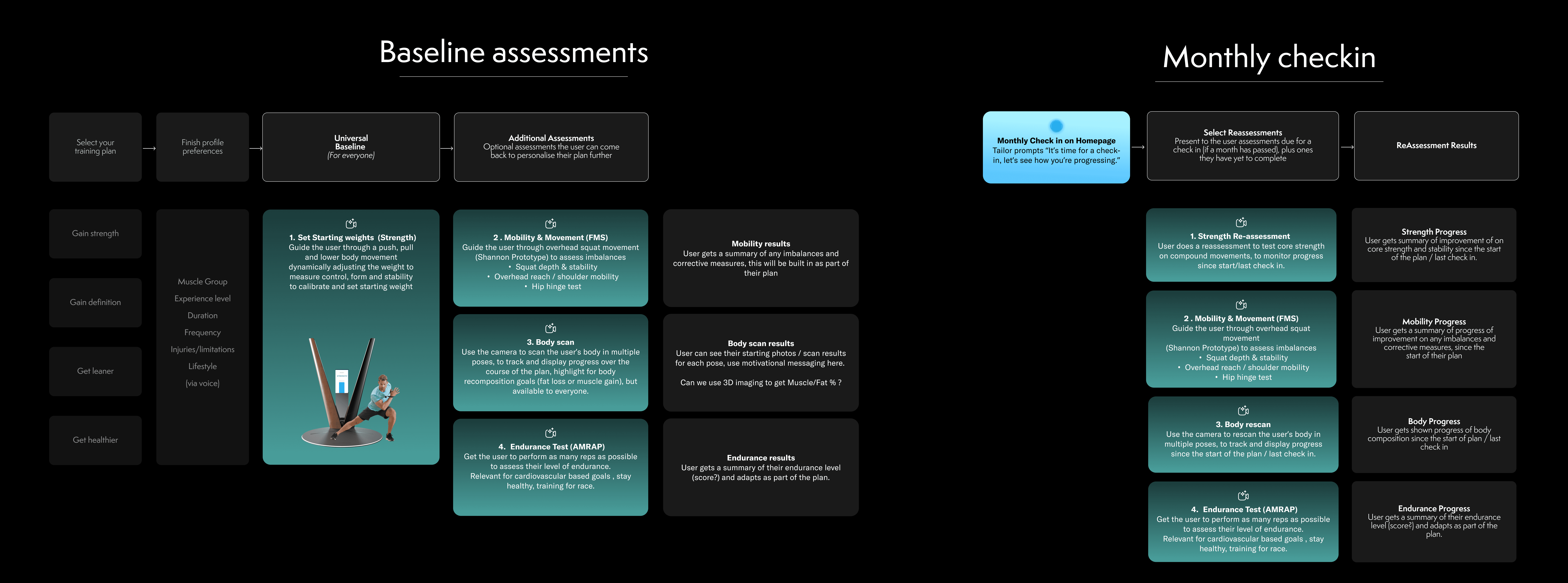 Most connected strength platforms rely on “lift till failure” tests that measure strength in isolation. I designed a holistic assessment framework that evaluated the whole person—not just how much weight they could move in a single session.