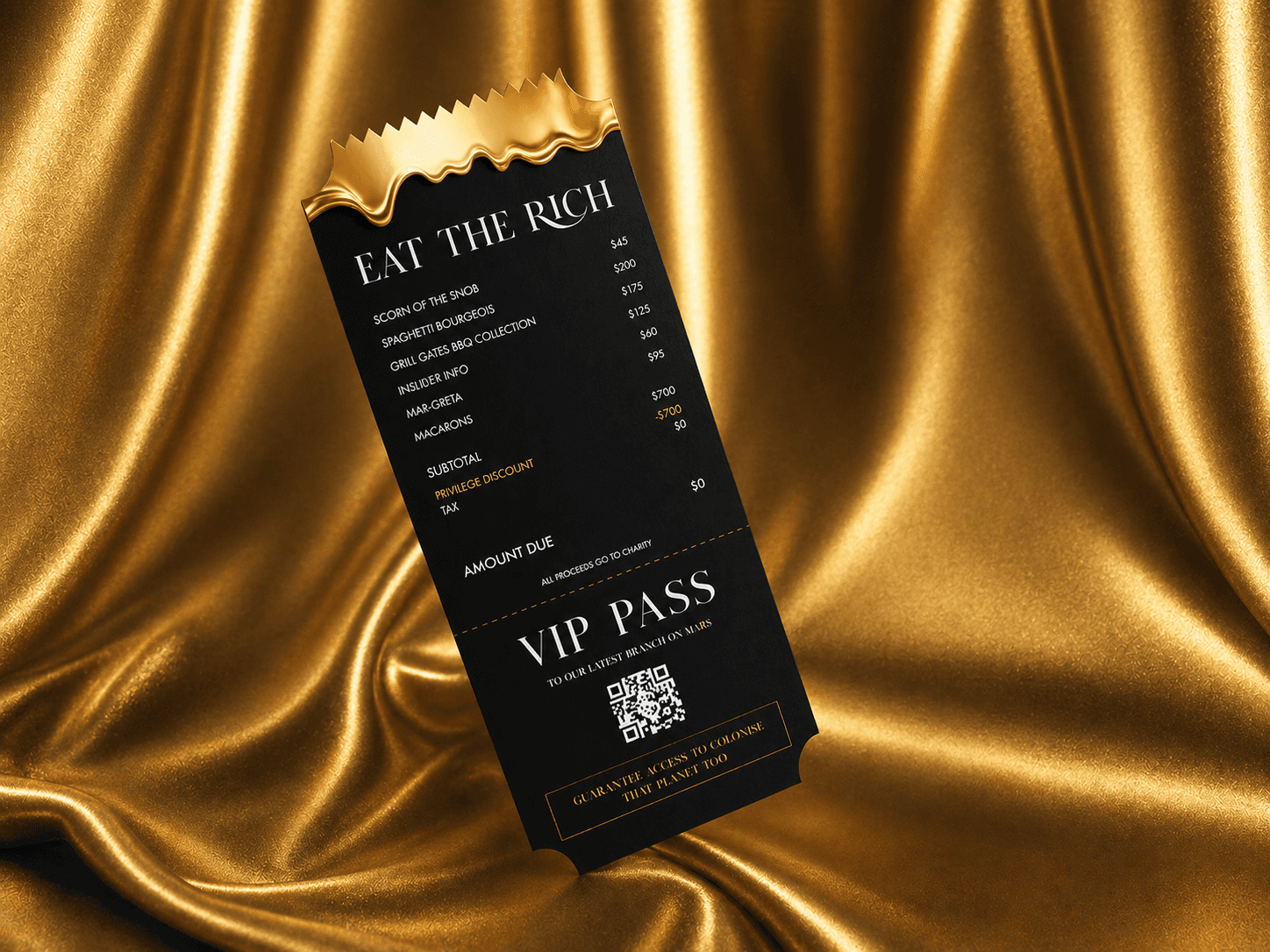 A satirical project mocking the top 1% of wealth holders in the current economic climate.