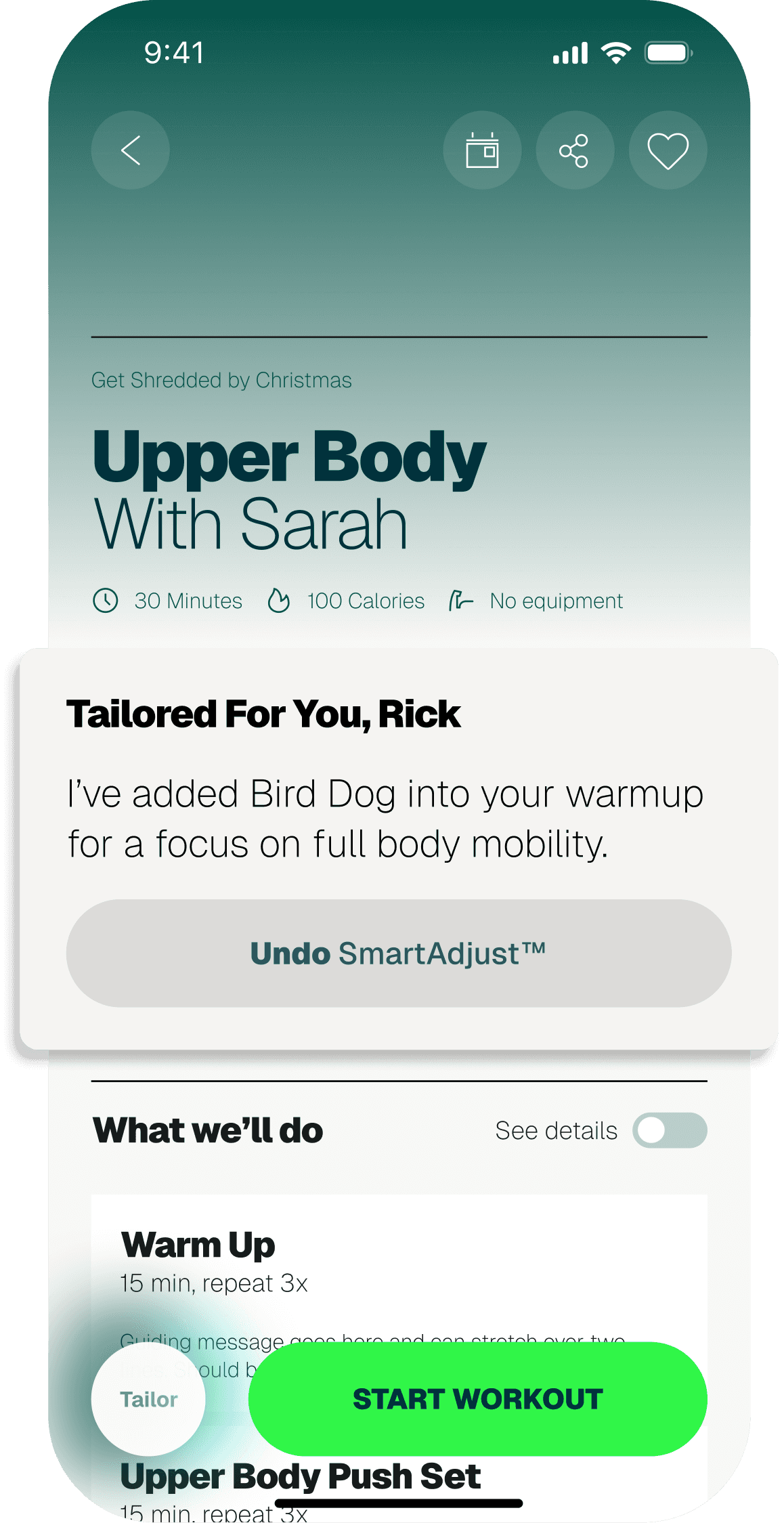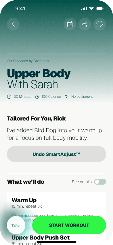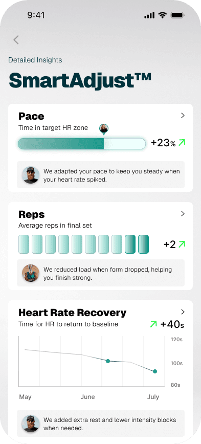 SmartAdjust reviews your history and adjusts the session before you start. Users can undo any change.