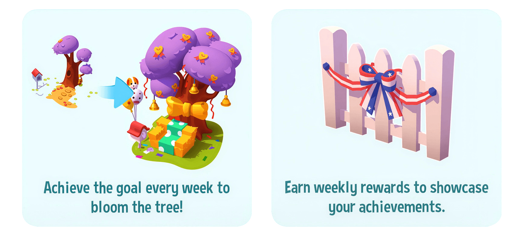 Goals reset weekly, creating a recurring reason to engage. Players who reach bloom maintain it into the following week.
